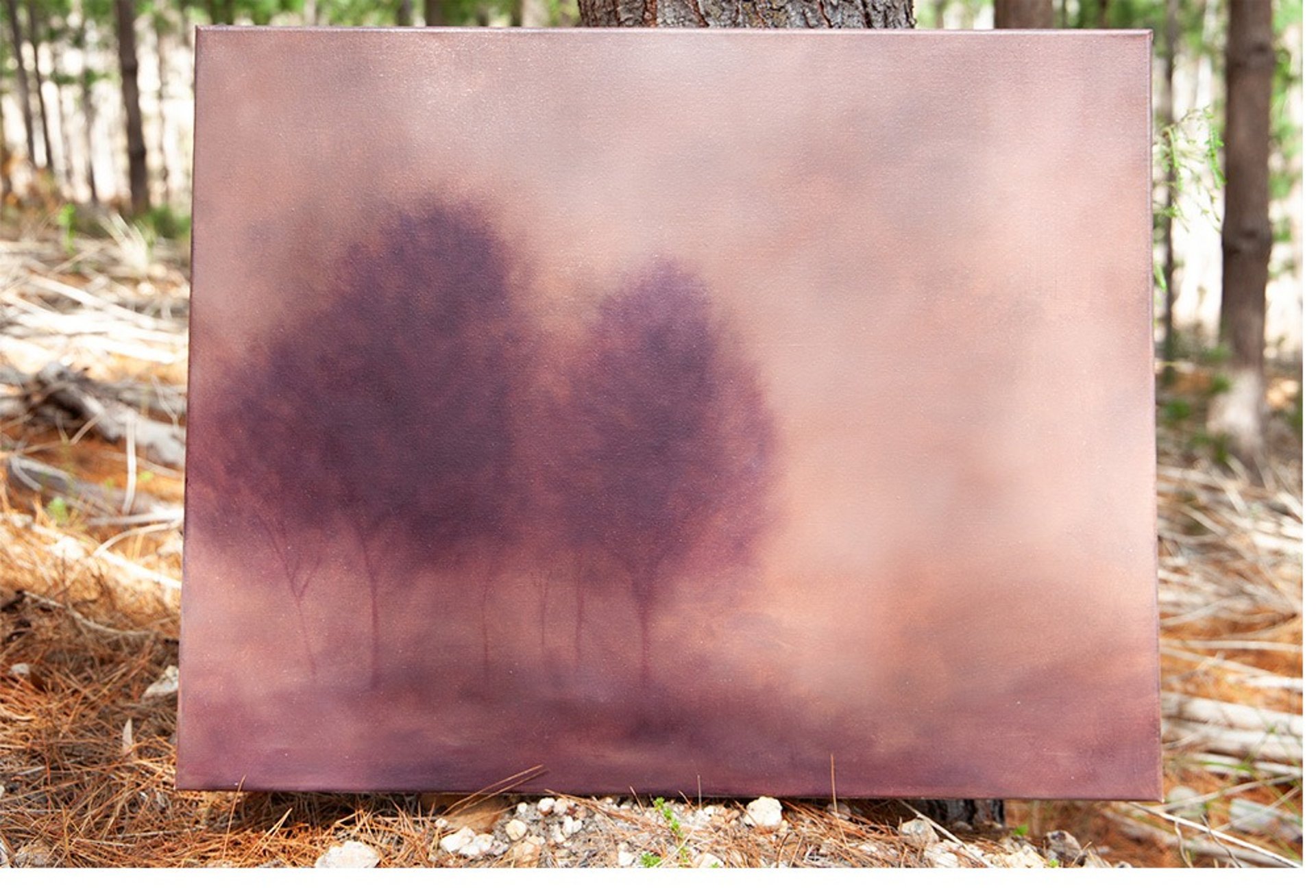 "Guided by intuition and memory, her work captures misty horizons, shifting light, and the emotional resonance of place. Each painting invites the viewer into a dreamlike atmosphere — where the natural world becomes a reflection of the inner one."